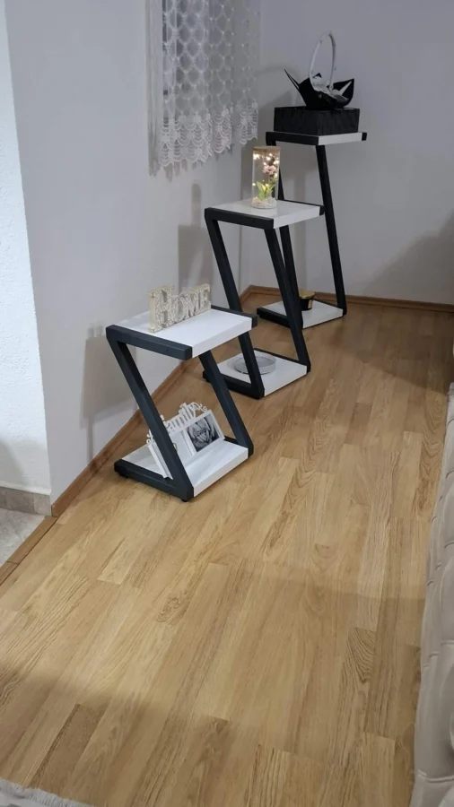 Stil koji naši klijenti najčešće biraju je industrijski loft – sirova ili patinirana metalna površina u kombinaciji s masivnim drvom. Jednako uspješno izrađujemo skandinavski minimalistički metalni namještaj u crnom ili bijelom mat premazu, kao i klasičniji zlatno-crni dizajn koji je posebno popularan za hotelske i ugostiteljske objekte.
